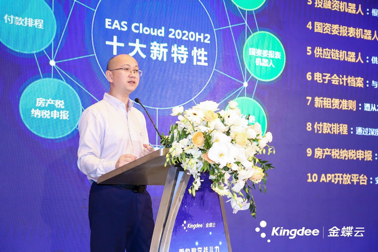 金蝶中國EAS Cloud產(chǎn)品部副總經(jīng)理吳躍海先生則通過產(chǎn)品秀向嘉賓展示了金蝶EAS Cloud 2020H2版本在產(chǎn)品的云優(yōu)化、智能化、電子化等方面做出的創(chuàng)新。新版本通過智能機(jī)器人及智能應(yīng)用幫助企業(yè)財(cái)稅數(shù)字化建設(shè)。