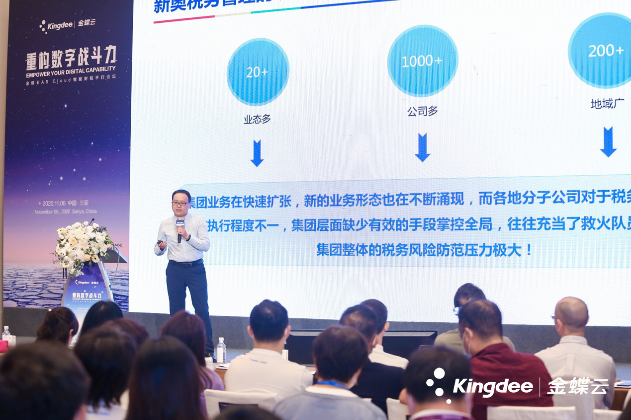 11月6日,“2020金蝶云全球用戶大會(huì)”在美麗的三亞成功舉辦,“重構(gòu)數(shù)字戰(zhàn)斗力--金蝶EAS Cloud智能財(cái)稅平行論壇“邀請畢馬威中國、金蝶EAS Cloud、金蝶發(fā)票云、新奧集團(tuán)、九州通集團(tuán)、廣西路橋集團(tuán)等智能財(cái)稅業(yè)界大咖和企業(yè)管理者,攜手線上線下諸多大企業(yè)財(cái)稅管理者共同探討EBC時(shí)代企業(yè)智能財(cái)稅轉(zhuǎn)型之道。